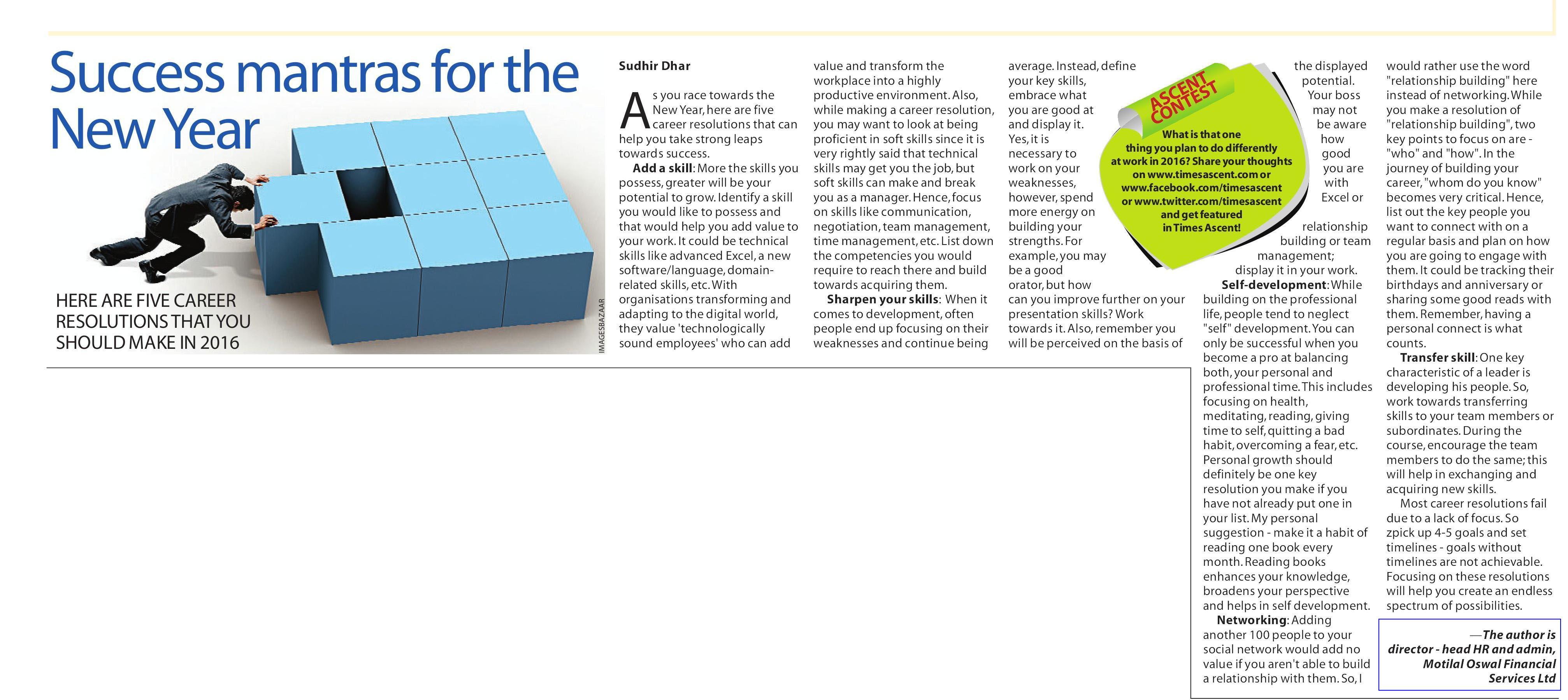 Success Mantras for the New Year - Sudhir Dhar of Motilal Oswal http://goo.gl/zfNNou