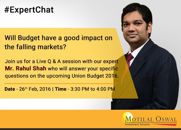 Live Q&A session on upcoming Budget 2016 with Mr. Rahul Shah of Motilal Oswal on 26th Feb 2016 Time - 3:30PM to 4:00 PM https://goo.gl/kOjz7Q