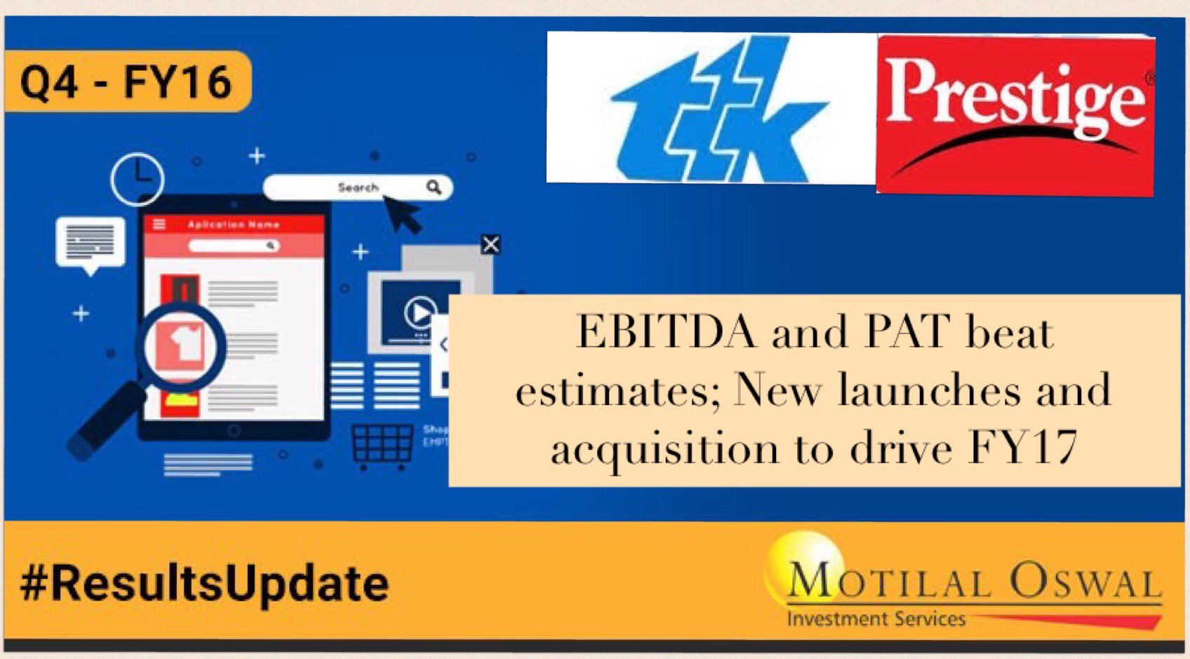 TTK Prestige : EBITDA and PAT beat estimates; New launches and acquisition to drive FY17 Report from Motilal Oswal Financial Services https://goo.gl/2zWX27 https://goo.gl/2zWX27