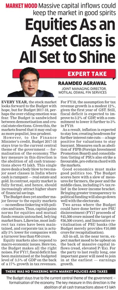 Expert take - Mr. Raamdeo Agrawal, Motilal Oswal Financial Services - Budget2017 https://goo.gl/2rJFSM