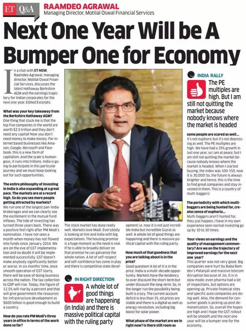 Next 1 year will be a bumper one for #economy- Raamdeo Agrawal, Motilal Oswal https://goo.gl/qWQAbn
