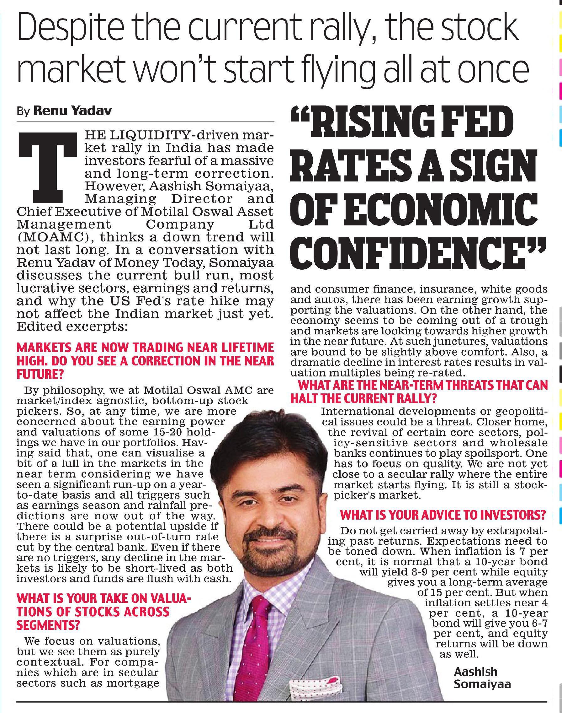 Despite the current rally, the stock market wont start flying all the once: Mr. Aashish Somaiyaa of Motilal Oswal https://goo.gl/uUzb7Y https://goo.gl/uUzb7Y