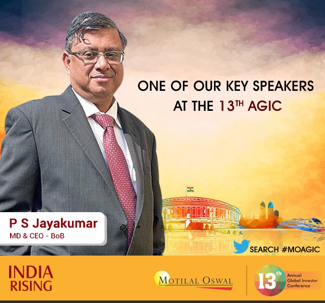 P S Jayakumar, MD & CEO - BoB is one of our key speakers at the 13th #MOAGIC, Stay Tuned https://goo.gl/V8ZcBn